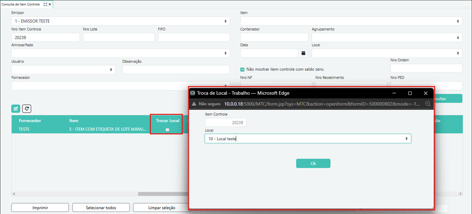 A grade daConsulta de Item Controle agora possui um botão de acesso rápido à Troca deLocal. A alteração reduz etapas de navegação e permite que a movimentação sejafeita sem perder o contexto da pesquisa em andamento.